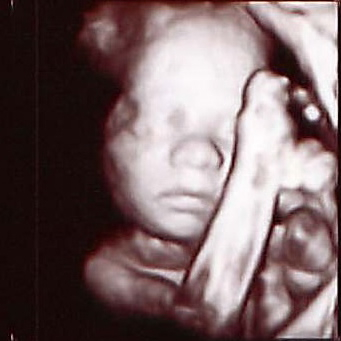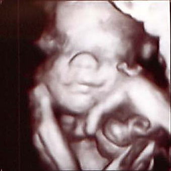 I definitely see a resemblance to James. Not so much comparing them in the ultrasounds, but the second ultrasound of Number Three, where you can see his face straight-on, he looks like several of the pictures that were posted of James. 🙂