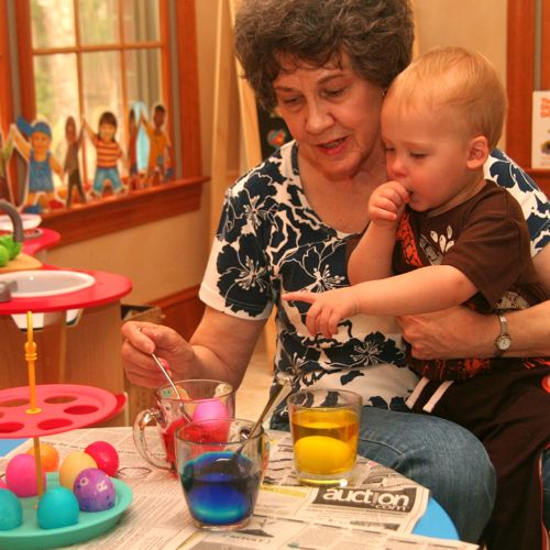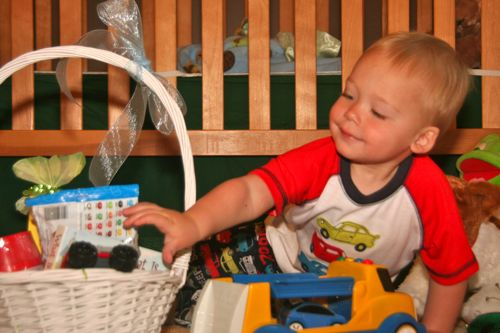…and did the egg “hunt” with John’s parents. It didn’t take too long for him to figure out the object of the game!