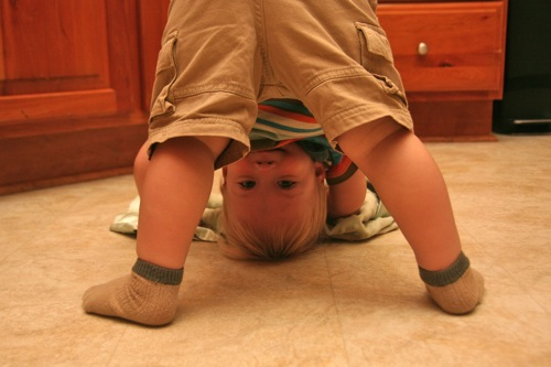 The other day he alerted me to his “cupcake pants,” so maybe potty training is on the radar. He can get out of the bathtub by himself now. He can get up and down stairs without holding onto anything. This morning he saw himself reflected in his spoon and said, “me.” He is upset to see a picture of Mommy and Daddy that predates him, shaking his head and saying in a hurt voice, “No Valor!”
