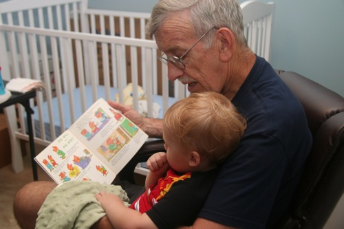 For the Fourth we took a road trip down to Tallahassee to see “Guh-gah” and Papa. Valor was more than a little sad to discover no “gingerman” or Christmas tree waiting for him. What he did get were two doting grandparents. We got to visit two of my cousins and the newest additions to my extended family (twin second cousins). And John was happy because he finally got to play bridge with physical entities instead of internet opponents.